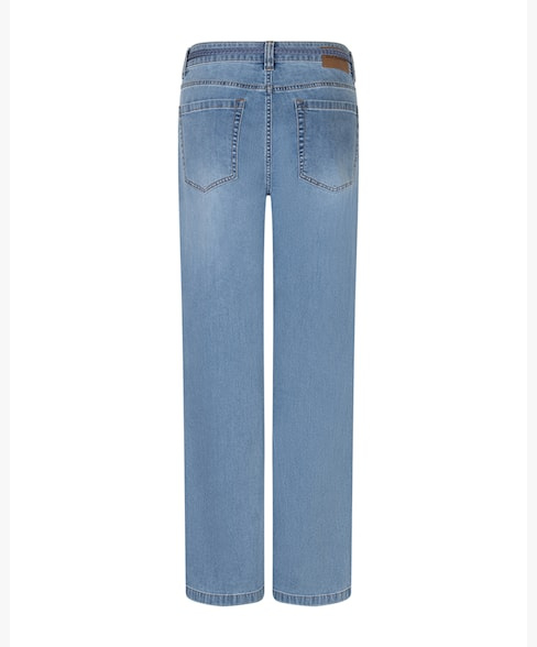 De Colette & Belt Light Blue is een wide leg jeans met een gevlochten koord. Dit geeft de jeans de perfecte zomerse touch. Deze denim is aansluitend op de heup en loopt vanaf de bovenbeen wijd uit. De Colette & Belt Light Blue heeft een comfortabele hoge taille en een blauwe wassing. De jeans is gemaakt van stretch denim voor ultiem comfort.